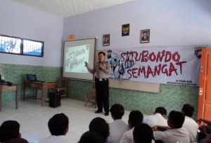 Bhabinkamtibmas Brigadir David melaksanakan Kegiatan Pembimbingan dan Penyuluhan kepada para pelajar di SMK – MA AL-Falah di desa Pesanggrahan Kecamatan Jangkar (Foto. Repro)