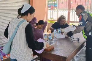 BINTANGTENGGARA – Pemandangan tak biasa tampak di jalur menuju Pelabuhan ASDP Ketapang. Di sela kesibukan mengurai kemacetan panjang, dua personel Satuan Lalu Lintas (Satlantas) Polresta Banyuwangi justru sibuk “ngobrol santai” sambil berbagi makan siang dengan salah satu pemudik. Mereka adalah Aiptu Arief Handoko dan Aipda Nyoman. Keduanya mendekati Rohmat, warga Besuki yang tengah antre hendak menyeberang ke Denpasar, Bali. Melihat …